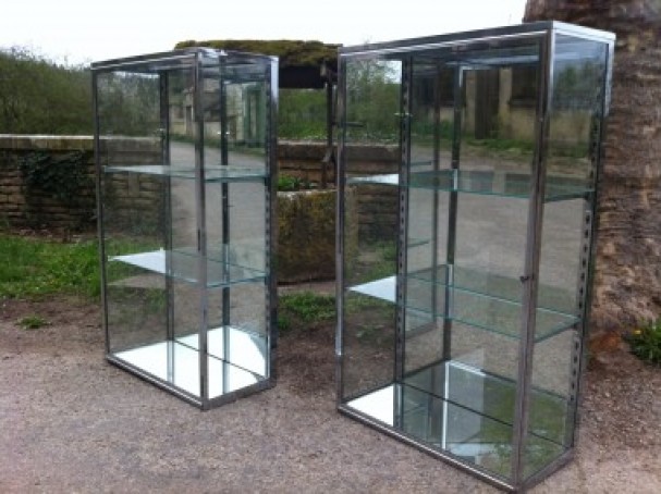 Paire de vitrines chromées Paire de vitrines en métal chromé. 1930 environ. 2 tablettes intérieures. Clé. Dim: Hauteur 111 cms X 65 cms X 30 cms Ajouter cet objet à mes favoris Pour en savoir plus, contactez-nous